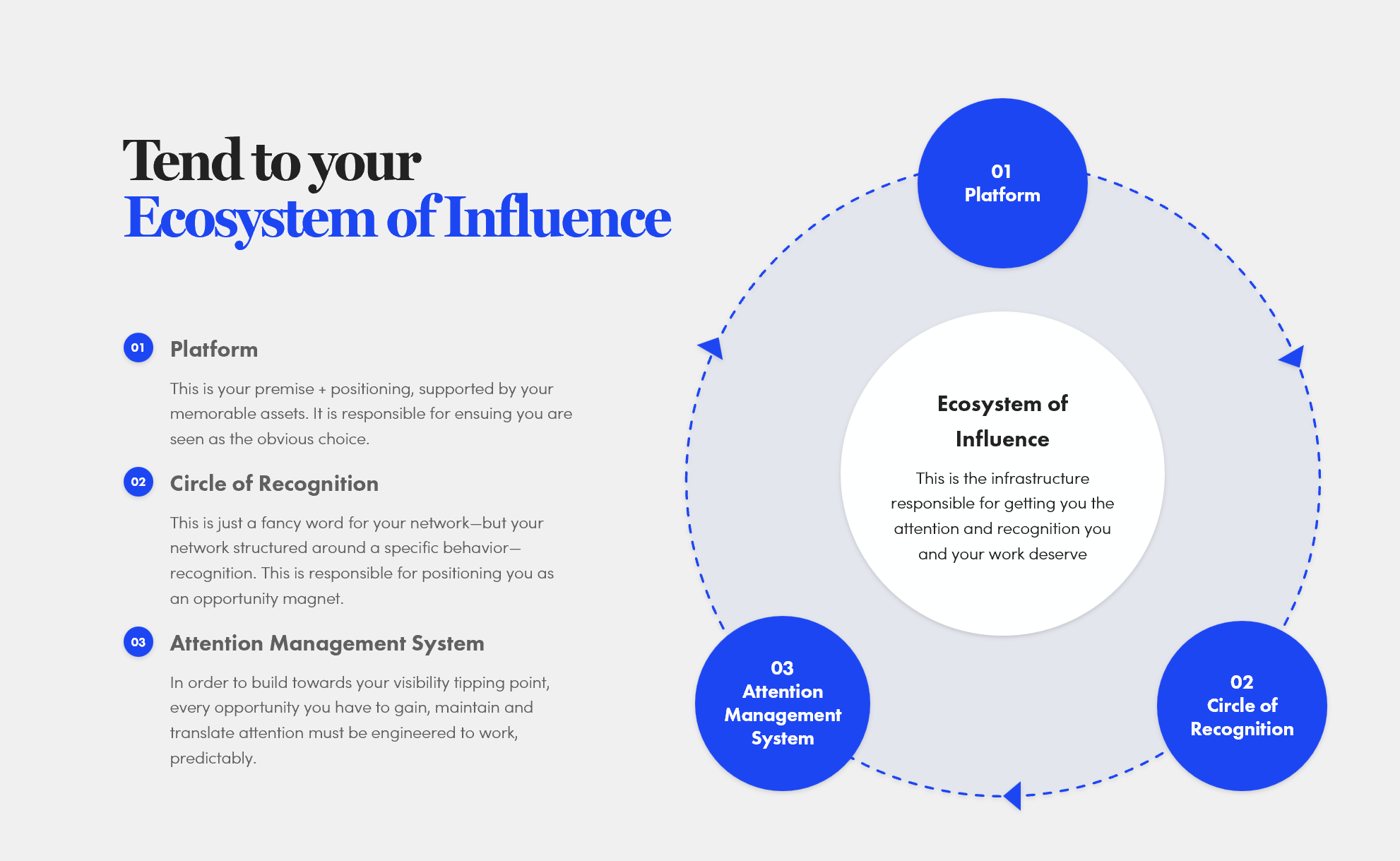 With their powers combined, these pieces make up your Ecosystem of Influence. If you’d like support building or refining yours, that's exactly what we do in the Visibility Catalyst Program.
